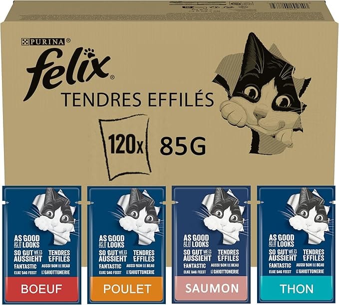 Aliments humides (pâtées, sachets fraîcheur) : apportent de l’eau, sont souvent plus appétents et peuvent aider les animaux qui boivent peu.